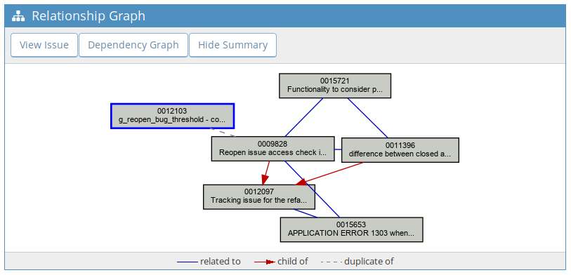 | Description | The usage of the graph could be drastically enhanced by adding the content of the item's title-attribute to the output. This way the graph get more context, instead of just displaying a bunch of ticket numbers. The whole thing could look like something in the attached mockup image "bug_relationship_graph_img-Mockup.png". • Can this be done by our own administrators in our mantis installation? If yes, what would be the necessary code? • If this feature would be added to mantis by mantis' devteam, the possibility to enter a value for the number of characters would be helpful. Any reactions are welcome ;-) Kind regards. Roger | ||||