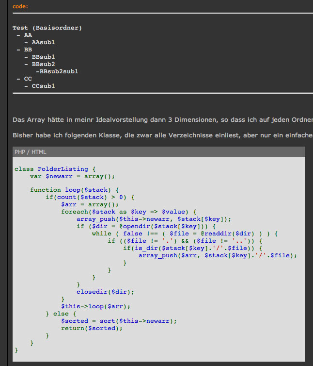 | Description | Additional [code] [/code] tag for bugnotes and other text fields to have a formatted output for code snippets. See attachment for an example from another board. They have two different code tags, one for code and one special tag for php and html with syntax highlighting. | ||||