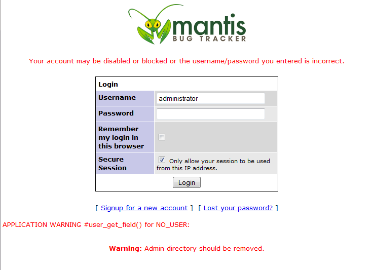 | Description | After first install to use with sql 2008 express r2 (mysql work fine) after search in halfday i found this solution is fix go to library\adodb\adodb.inc.php in mantis folder and edit this line for me this line is 110 now warning is gone and can login normally. | ||||