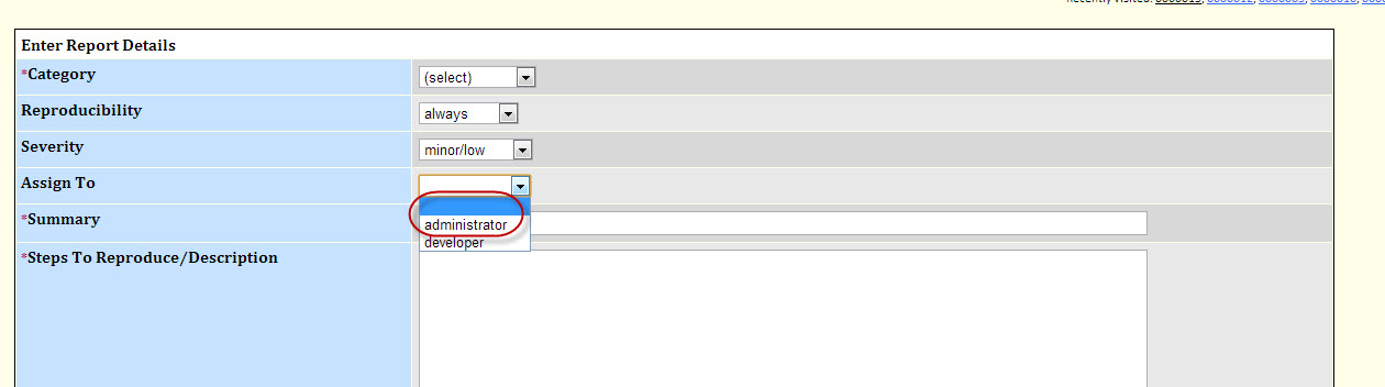 | Summary | 0014779: How can i remove administrator name in "assign to" field of a report issue page in default | ||||