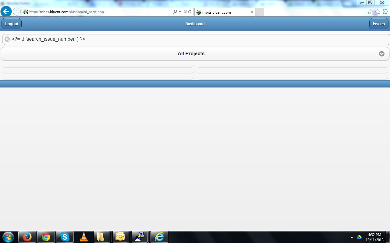 | Description | I have upgraded MatisTouch, but didn’t succeed with Logo implementation and also have some issue with dashboard page (it is not showing contents like:- report issue). Screenshots has been attached. Our Config_inc.php file configurations:- ?php MantisTouch - a MantisBT web app optimized for mobile devices.Copyright (C) Victor Boctor - vboctor@gmail.comThis app is provided under a commercial license whichdoesn't provide the right for distribution.See license.txt for more details about license terms.The URL to MantisTouch terminated with a /.$g_mantistouch_url = 'http://mbits.bluent.com/'; // The URL to the managed MantisBT instance terminated with /. $g_issues_list_limit = 50; // The email to use for users to send feedback to the admin (e.g. can't login). // The url of the logo image to show on the login page. $g_logo_image_url = 'bluent/blogo.png'; | ||||
