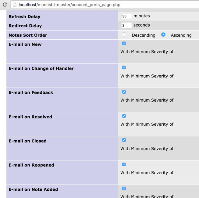 | Summary | 0020414: Severities are missing from email preferences | ||||