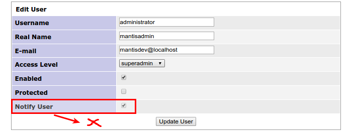 | Description | On manage user page, the "notify user" checkbox is not part of the user data, and is only used to trigger a notification if the form is saved. Attached image for reference | ||||