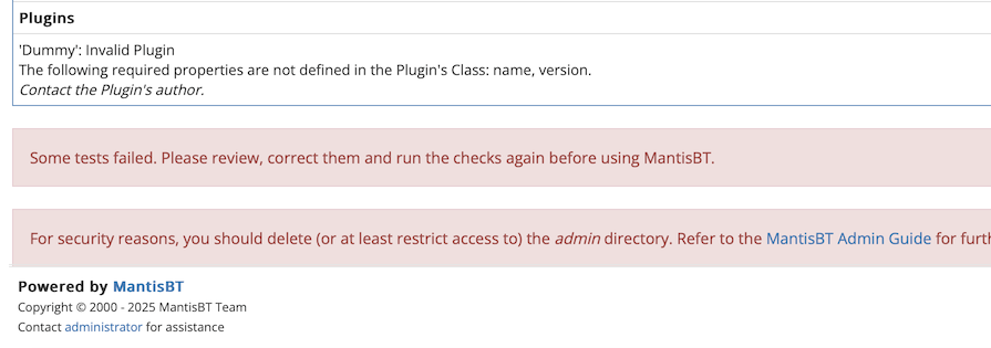 @SteveA , thanks for your GitHub feedback! I fixed a couple issues there and added the missing include file. Notice that the CustomContent plugin insert points are currently FIVE, and only FOUR of them are currently working because of a bug in the current Mantis 2.16.0 source code, which doesn't trigger the corresponding EVENT_LAYOUT_PAGE_HEADER hook anymore. If you really need to also enable that fifth one I can show you how to modify the mantis source code to manually trigger it and make it work with the pugin, but I wouldn't want to do that as the Mantis team will most likely fix that in a future release (thus fixing the plugin as well). Notice, though, that with the HEADER insert point (which is currently working) you can do almost everything using JavaScript/JQuery, including HTML injection in the header part of the page (which is a much cleaner approach until they fix the source code). I added some useful examples in the CustomContent plugin's README.md file, I hope you'll find them useful enough. |