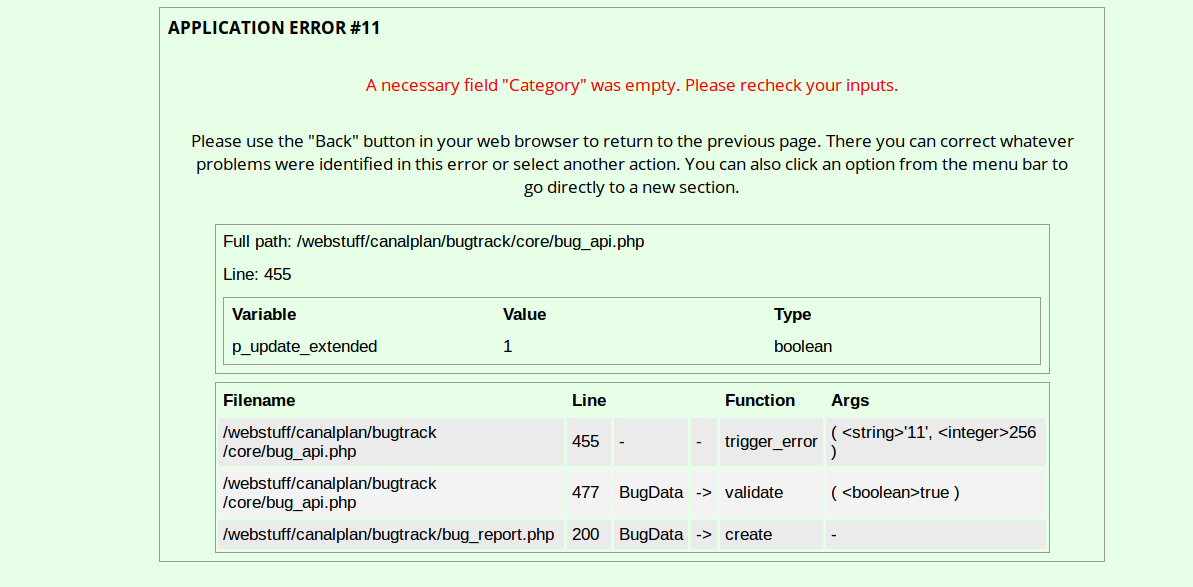 | Summary | 0022229: A necessary field "Category" was empty. Please recheck your inputs. | ||||