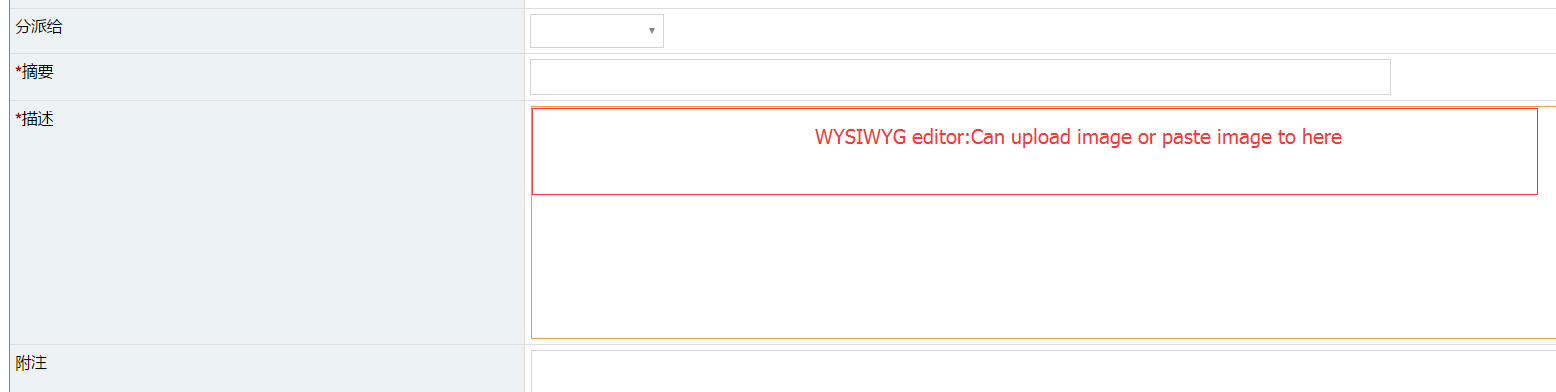 | Description | In submitting the report, we have a lot of demand is to enter the description and other information to join the picture, and the current mantisbt textarea input box does not support the picture of the insert or display (2.1 version of the markdown function can not display pictures). So I hope that the official version 2.X can be added to the WYSIWYG editor function, while providing users with configuration interface, you can choose to close or open the WYSIWYG editor. In addition, in order to insert the picture is convenient, we also recommend to provide paste the image upload function, so reduce the save screenshot and then upload the trouble, hope the team can adopt, very grateful. | ||||