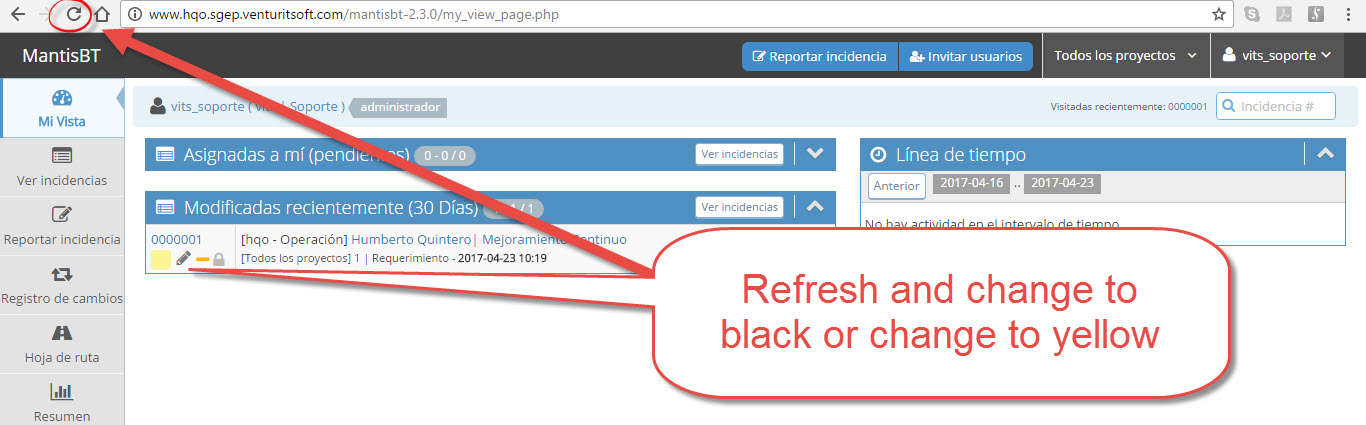 vits_soporte, I was not able to reproduce your problem with a fresh install of MantisBT release. The following additional information may be useful: