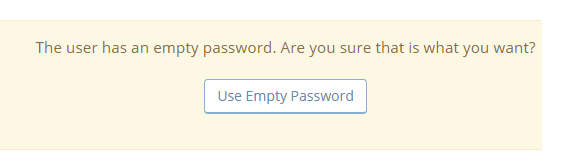 | Description | in the creation of new user when i put a password the create user a message appear (Image 1) then click user empty password button a new message appeared (image 2) so i think its a misleading message as it should appear only if do not write password and let it empty $g_send_reset_password=OFF | ||||