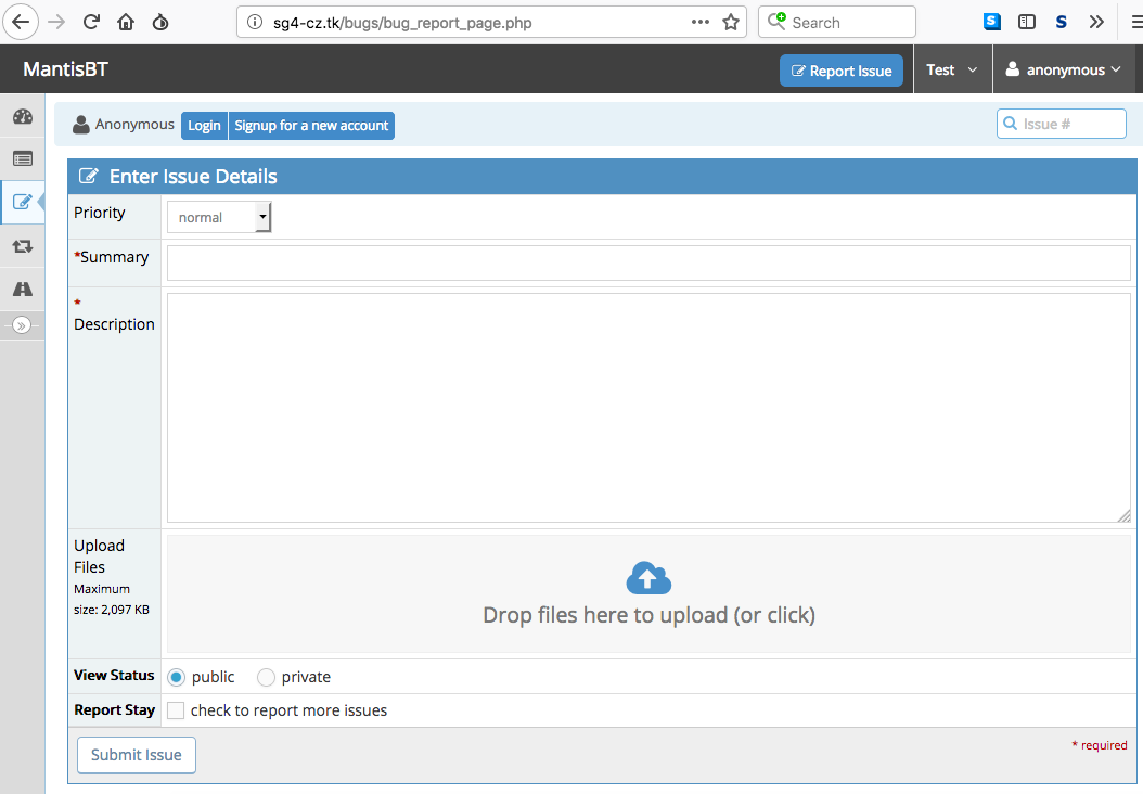 - Exact version of MantisBT, PHP, Database, Web server, Browser and Operating System