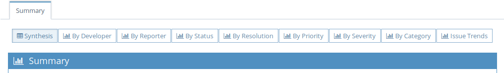 | Description | Until now, the various graphs generated by MantisGraph core plugin were available via the Summary page's submenu. The plugin was adding a "Synthesis" menu item for the main summary page, and created additional items for its own. As a result, the Main menu contained only a single Summary item, wasting screen real-estate. Since we have EVENT_MENU_SUMMARY which allows adding items to the main summary page menu, it would be better to regroup all MantisGraph pages under their own Graphs tab, next to the Summary tab. | ||||