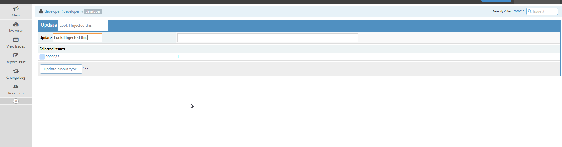bug_actiongroup_page.php opens, and and you see a rendered input field, with value of Look I Injected this (see attached screenshot poc.png) | ||||