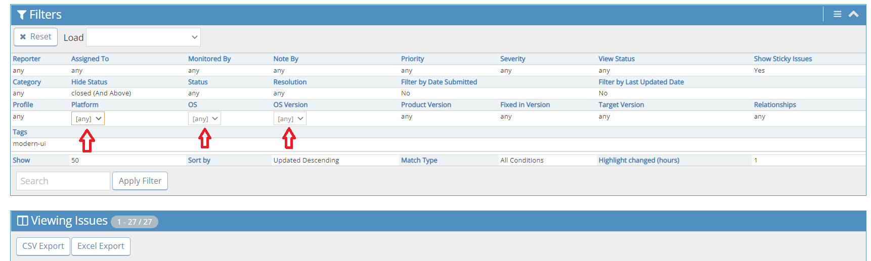 | Summary | 0031115: User is not able to see the options in filter | ||||