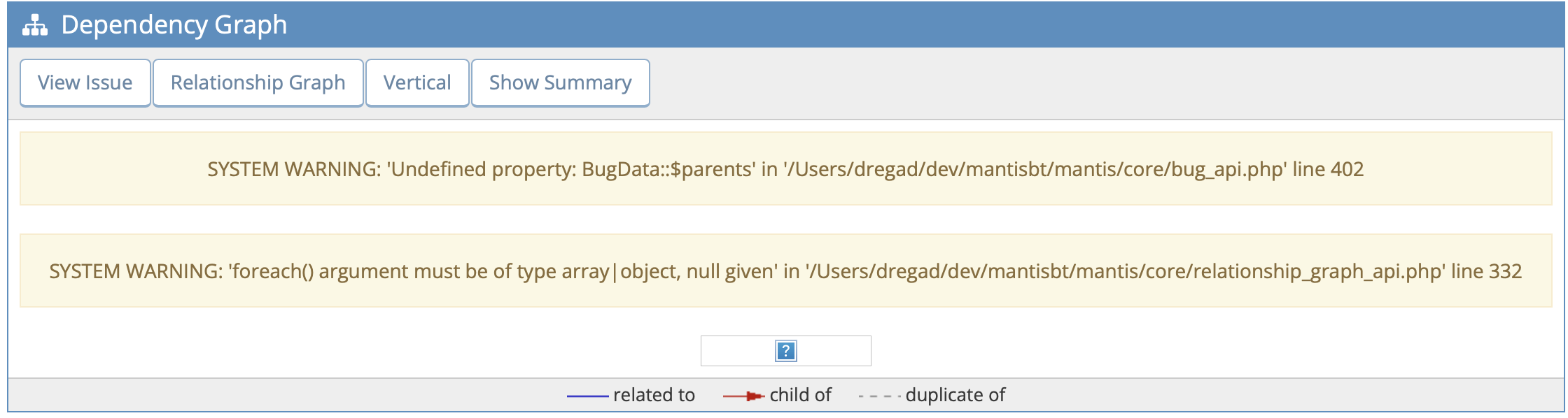 MantisBT master-2.26 1cd25800 introduced a regression in the Bug Dependency graph, see attached screenshot. |