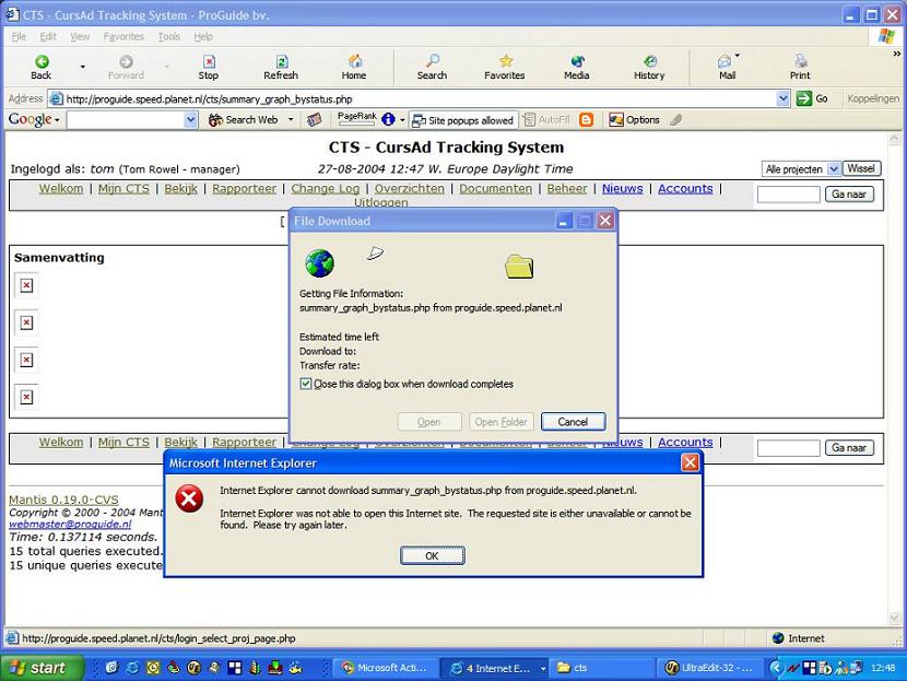 TomR, Have you tried to open the URL http://proguide.speed.planet.nl/cts/summery_graph_bystatus.php directly? ciao |