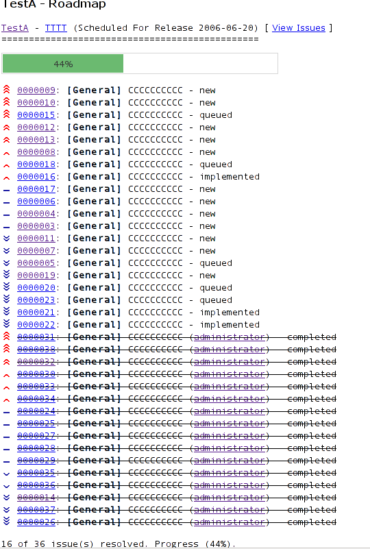 I've attached an alternative screenshot based on suggestions in bug 0010384. I'm of the opinion that it is too much information clutter on one screen... and it'd be far better/easier for people to just use the View Issues page with filters in place. There is no point in redesigning the roadmap page to be a duplicate of what we already have with View Issues. |